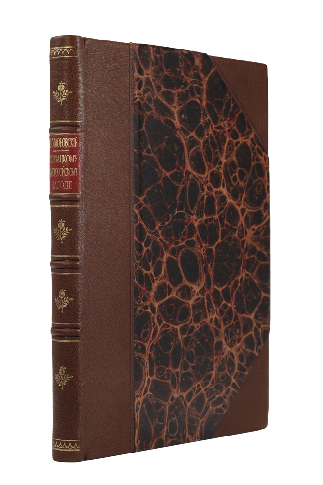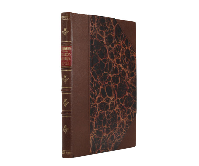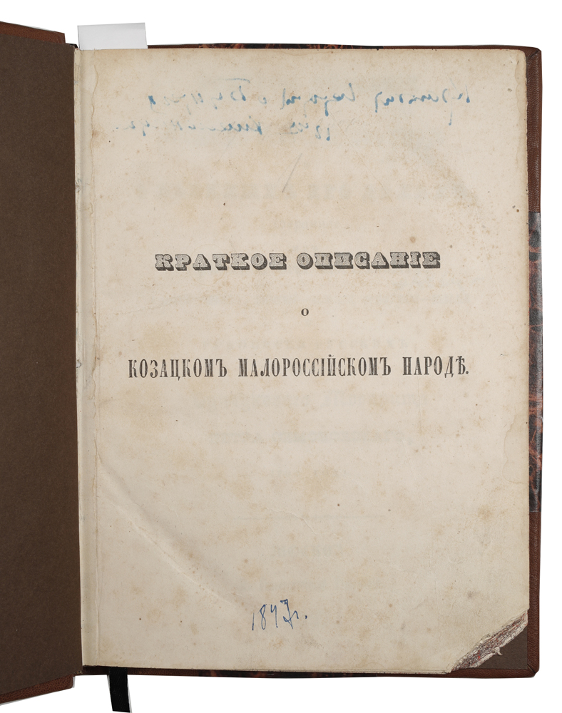 В індивідуальній складеній (шкіра, «мармуровий» папір) палітурі, шрифтове тиснення золотом на корінці. Фоксинг, забруднення паперу, відсутні невеликі фрагменти паперу нижніх кутиків всіх сторінок. На титулі та авантитулі власницькі позначки чорнилом. Книга має наукову, історико-культурну цінність і становить колекційний інтерес. Бібліографічна рідкість.