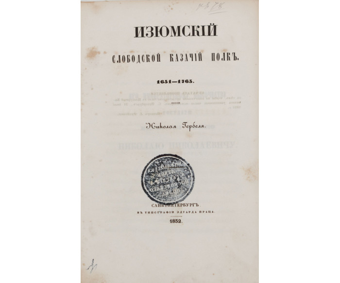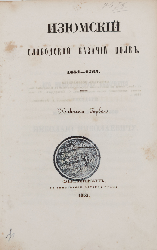 Гербель Н. Изюмскій слободской казачій полкъ 1651–1765 / Николая Гербеля.