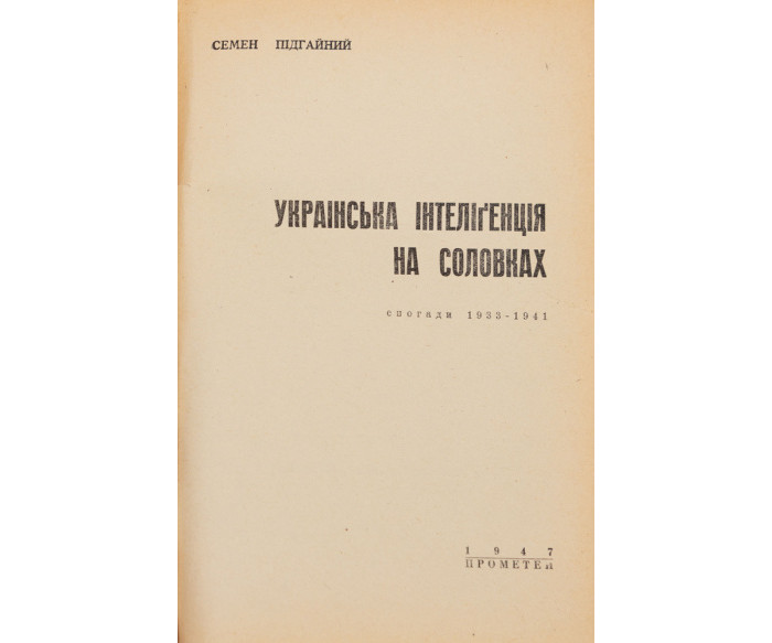 Підгайний С. Українська інтелігенція на Соловках: спогади 1933–1941.