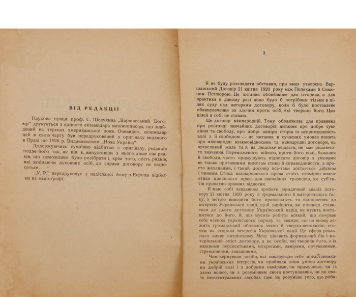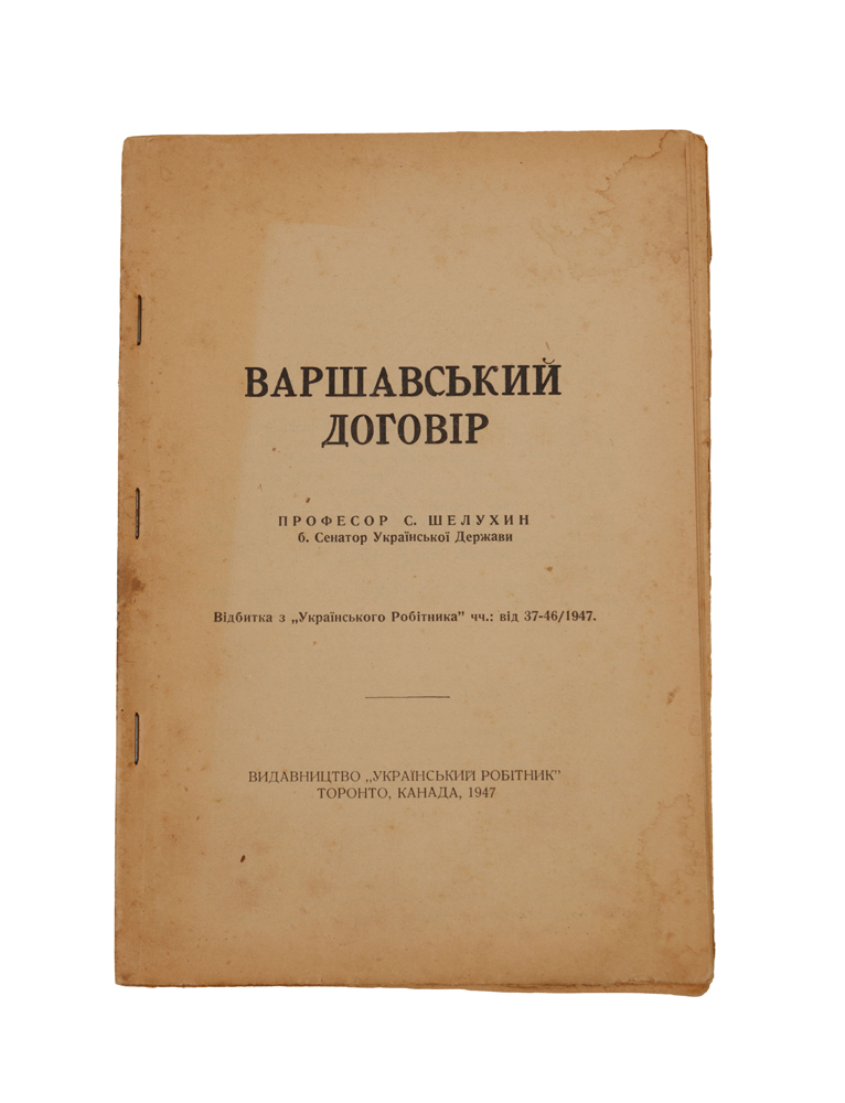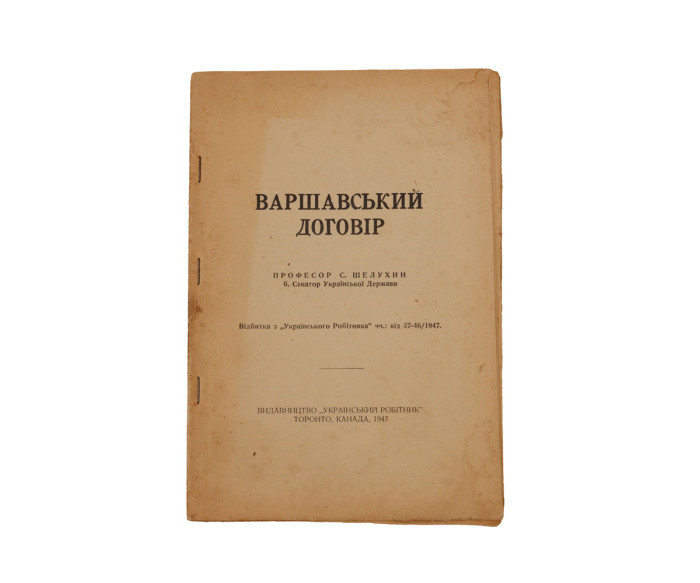 Стаття видатного українського вченого, юриста, генерального судді УНР Сергія Шелухіна (1864–1938) вперше вийшла друком у Празі в 1926 році. Метою розвідки був юридичний аналіз Варшавського договору від 21 квітня 1920 року між поляками та С. Петлюрою, а саме з’ясування правомочності договору та його відповідності інтересам України.