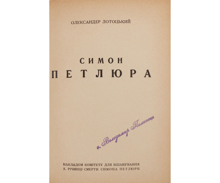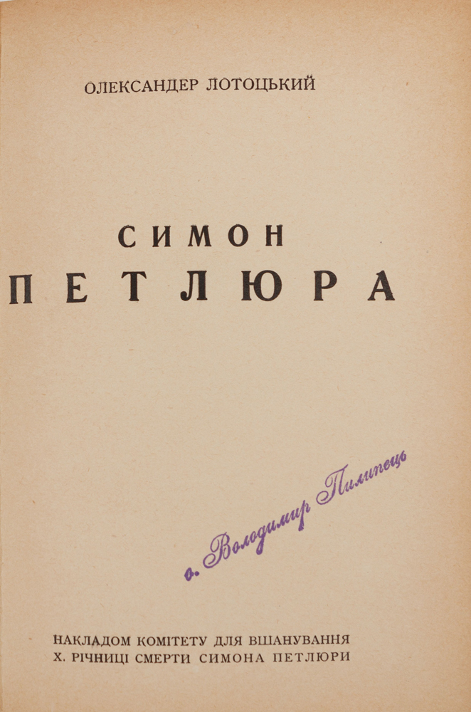 [Париж]: Накладом комітету для вшанування Х. річниці смерти Симона Петлюри; Друк. АБЦ, 1936. — [1] арк., 118 с.: портр. — 19,7 × 14,2 × 1,2 см.