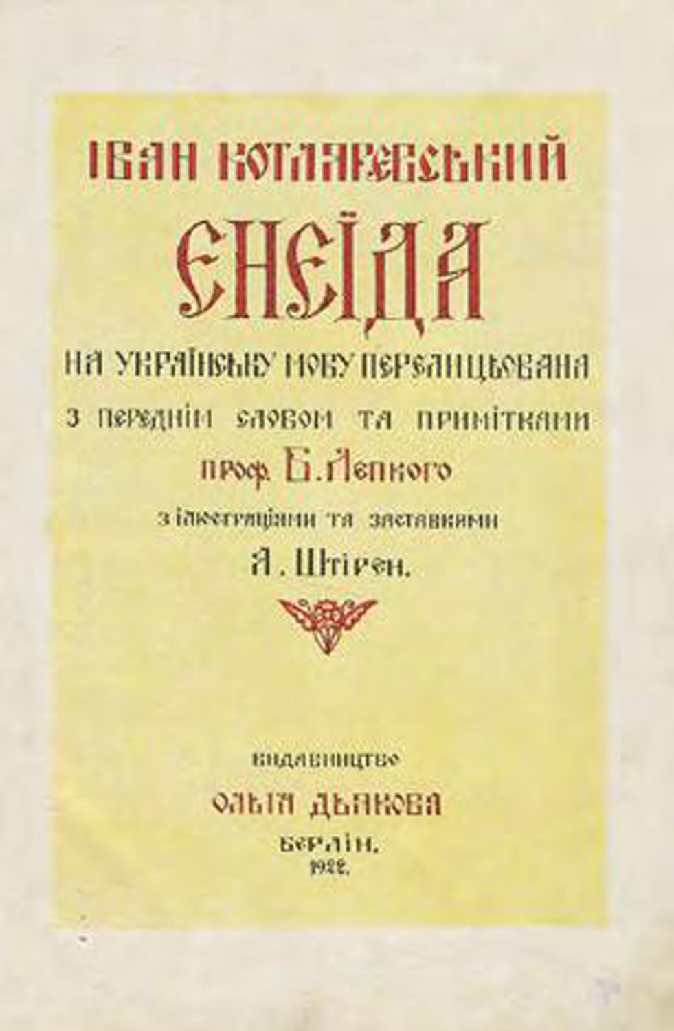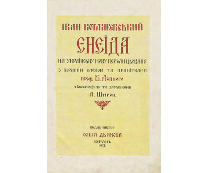 Котляревський І. Енеїда / на українську мову перелицьована з переднім словом та примітками проф. Б. Лєпкого з ілюстраціями та заставками Я. Штірен.