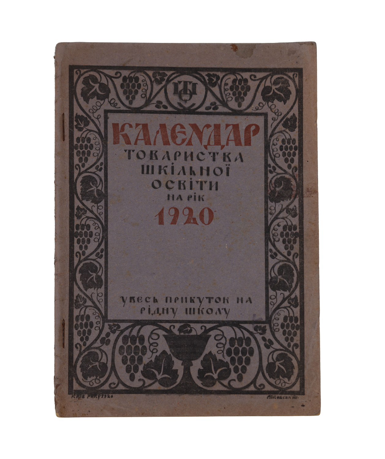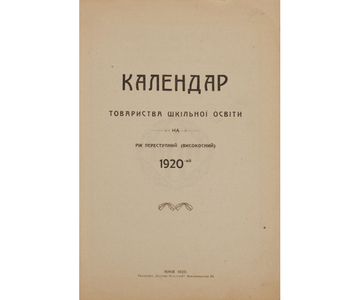Календар на 1920 рік «Товариства шкільної освіти», яке було засноване українським учительством у березні 1917 в Києві з метою організації українського шкільництва. До видання увійшли такі статті: «Сучасне становище освіти на Україні», «Всеукраінська Учительська Спілка», «Товариство шкільної освіти».