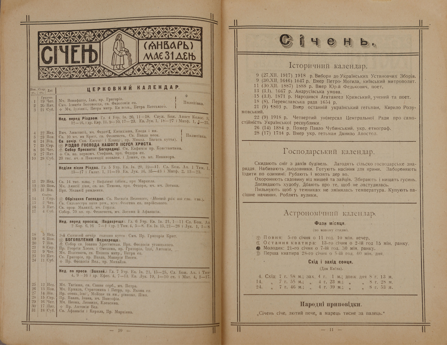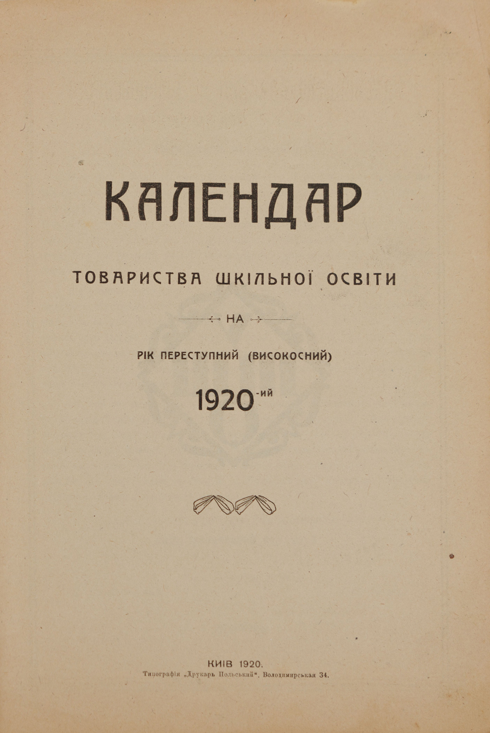 Календар Товариства шкільної освіти на переступний (високосний) 1920-ий.