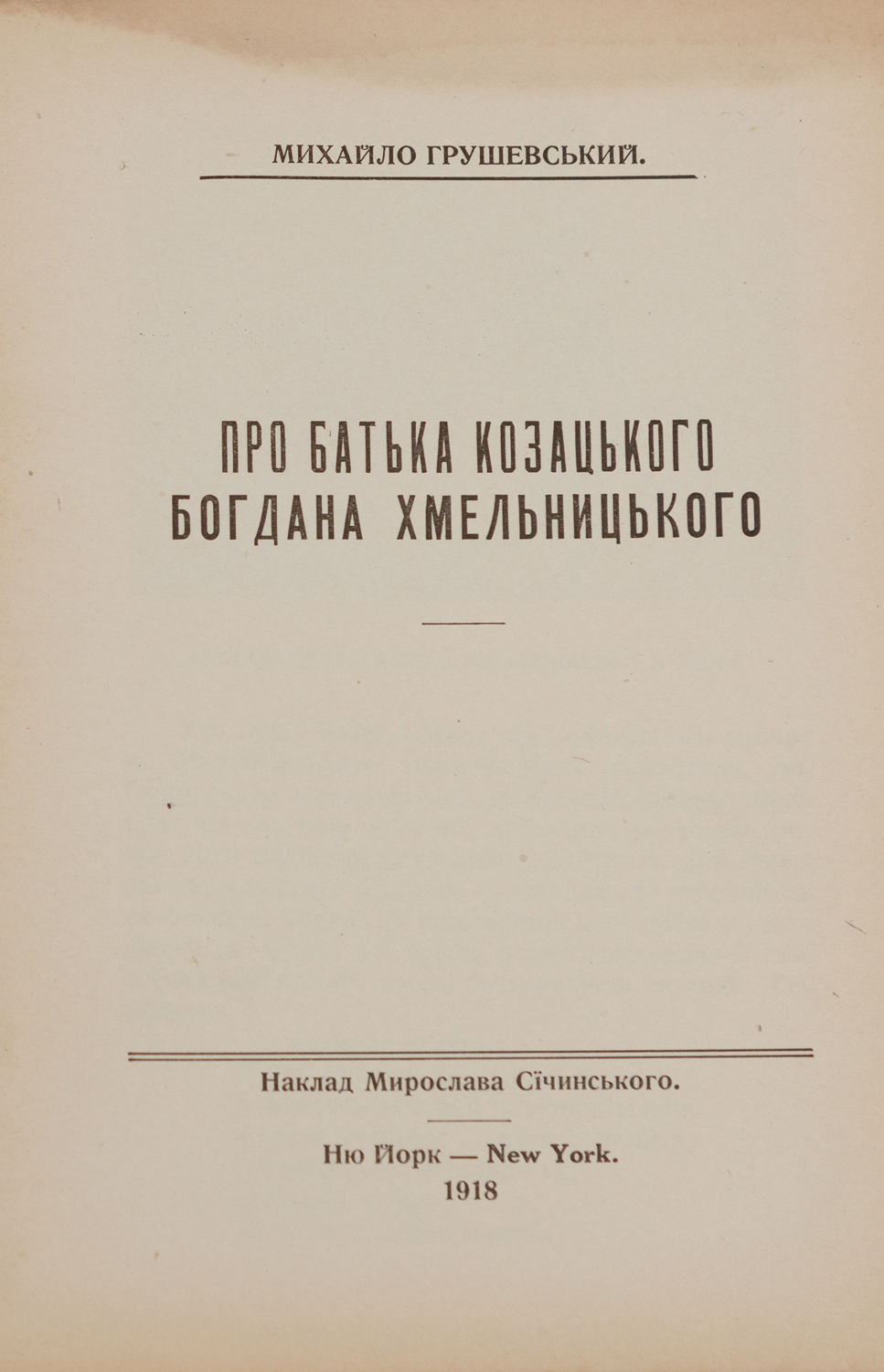 Ню Йорк: Накладом Мирослава Сїчинського; Українська Друкарська і Видавнича Спілка, 1918. — 74 с., [3] арк.: іл. — 19 × 13,1 × 0,3 см.