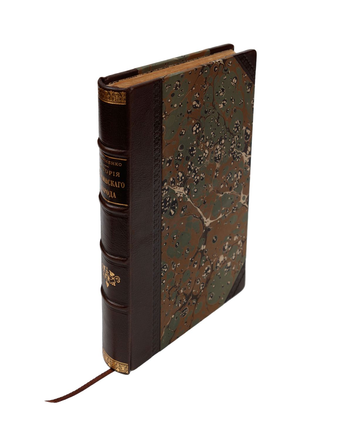 У складеній (шкіра, «мармуровий» папір) палітурі. Незначні потертості та забруднення. Орнаментально-шрифтове тиснення золотом на корінці. На титульному аркуші нерозбірливий підпис. Титульний аркуш другого випуску відновлено.