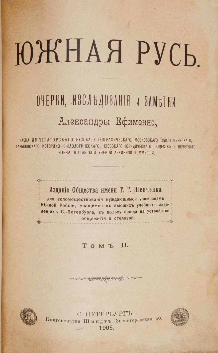 С.-Петербургъ: Изданіе Общества имени Т. Г. Шевченка; Книгопечатня Шмидтъ, 1905. — [1] л. фронтиспис, [2] л., 439 с., [2] л., 358 с., [1] л.: портр. — 22,7 × 15,5 × 4,5 см.