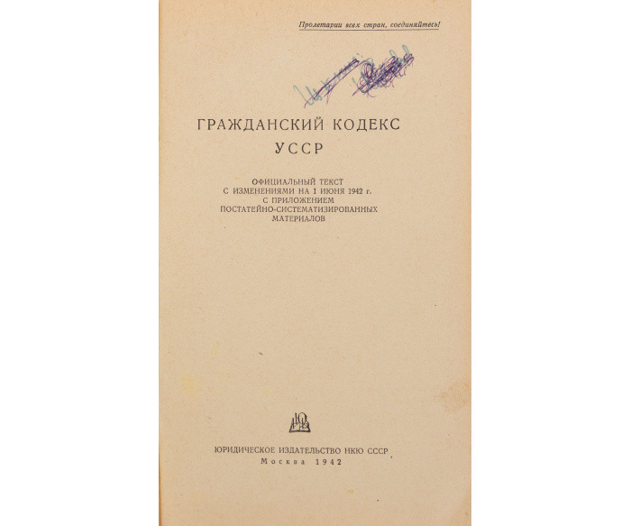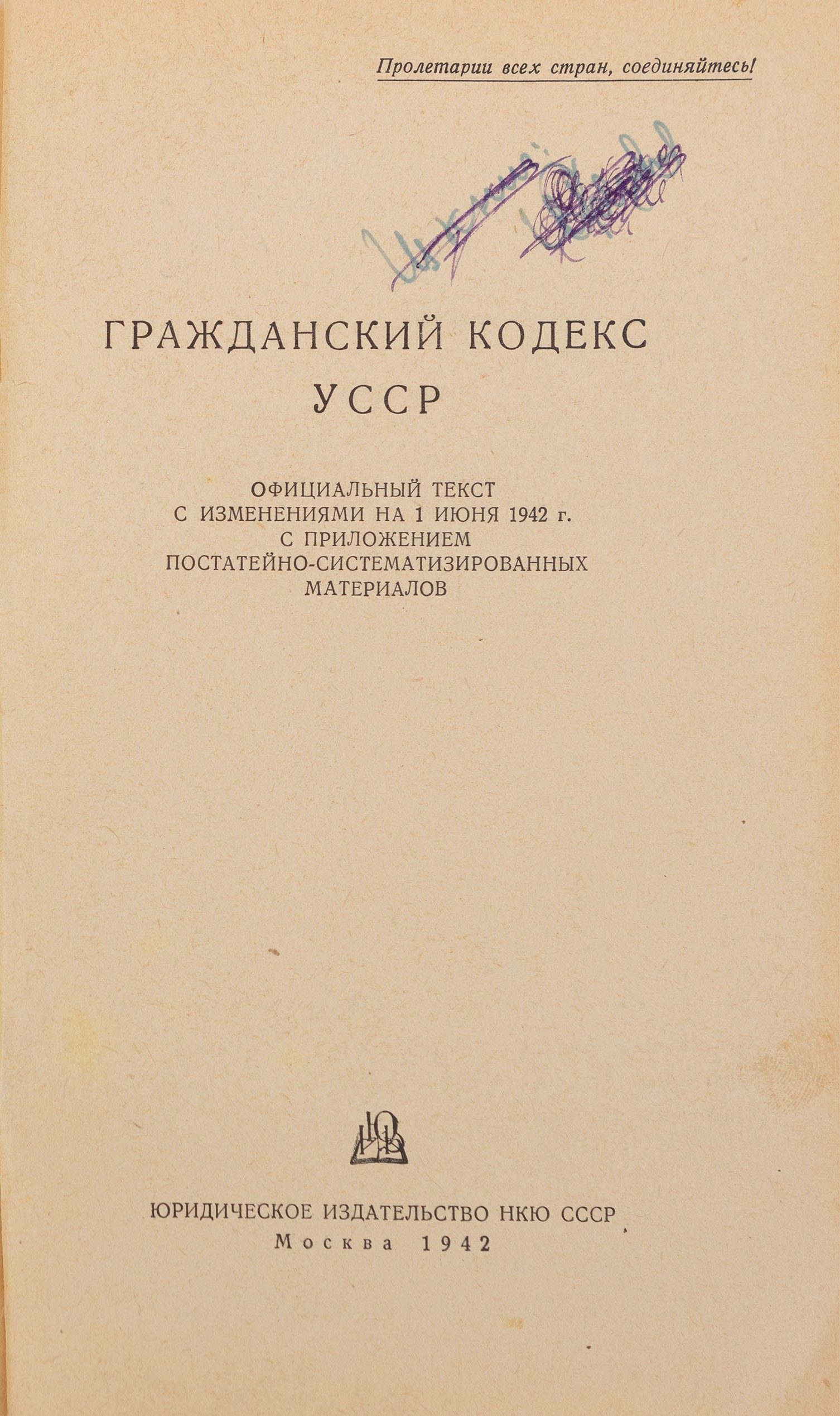 Гражданский кодекс УССР. Официальный текст с изменениями на 1 июня 1942 г. С приложением постатейно-систематизированных материалов.