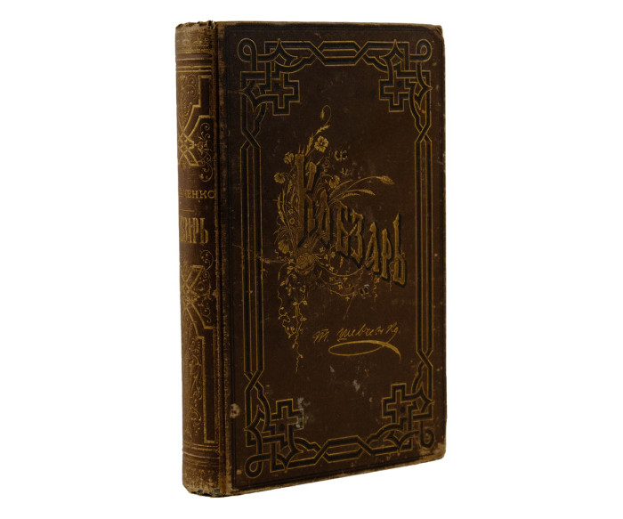 У художній коленкоровій палітурі з орнаментально-шрифтовим тисненням. Незначні потертості й забруднення. Містить портрет Т. Шевченка.