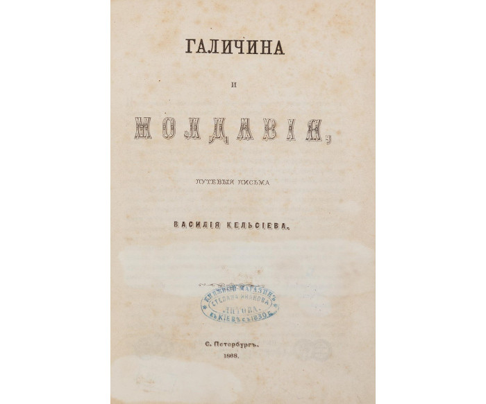 600–900 $Провенанс: на титульному аркуші печатка «Книжный магазинъ Степана Иванова Литова въ Кіевѣ съ 1830 г.». На форзаці екслібрис «Книгозбірня Віктора Рибчука».