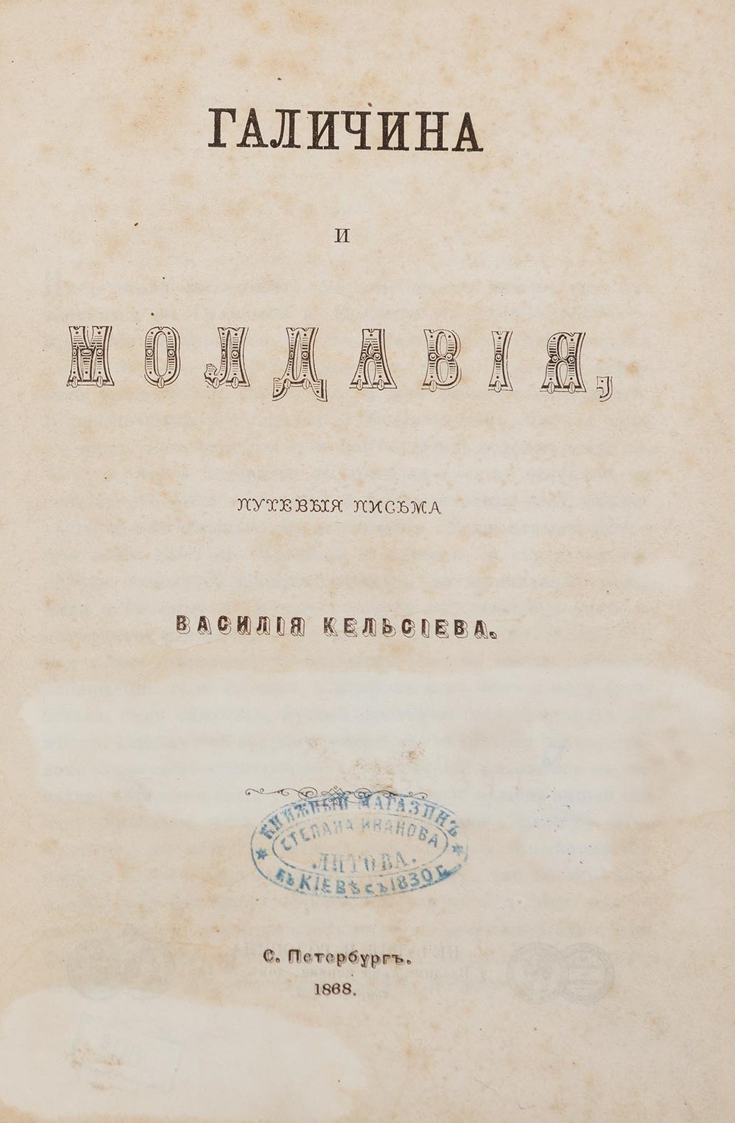 С. Петербургъ: Печатня В. Головина, 1868. — [1] л., IV с., [1] л., 352 с. — 21,5 × 14,3 × 1,2 см.