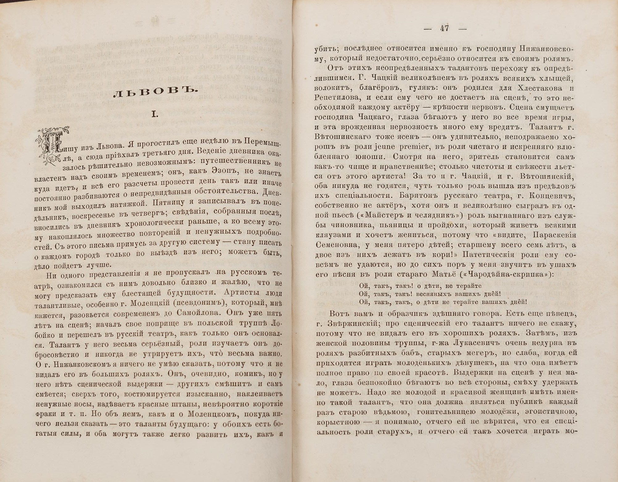 В індивідуальній складеній (шкіра, коленкор) палітурі. Орнаментально-шрифтове тиснення золотом на корінці. Незначні потертості й забруднення. Суперекслібрис «Ал. Г.-Л.». На форзаці екслібрис «Книгозбірня Віктора Рибчука». На титульному аркуші печатка «Книжный магазинъ Степана Иванова Литова въ Кіевѣ съ 1830 г.».