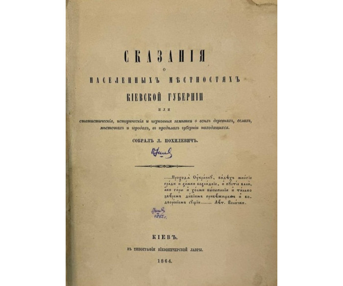 Кіевъ: Въ Типографіи Кіевопечерской лавры, 1864. — [1] л. илл., [1] л., VI с., 764 с. — 25,5 × 18,5 × 4,5 см.