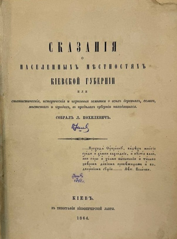 [Похилевичъ Л.] Сказанія о населенныхъ мѣстностяхъ Кіевской губерніи .