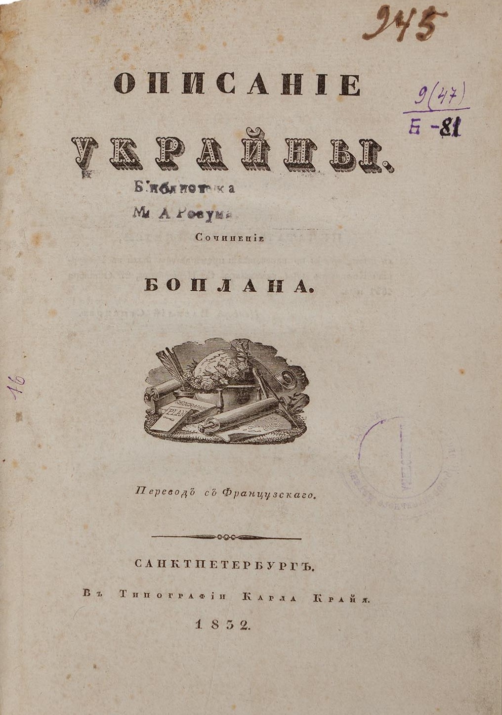 10 000–12 000 $Праця Г. де Боплана відкрила західному читачеві Україну як самостійну державу в розпал визвольної війни під проводом Богдана Хмельницького, здобула широку популярність в Європі і впродовж тривалого часу була важливим джерелом інформації про нашу країну та її народ.
