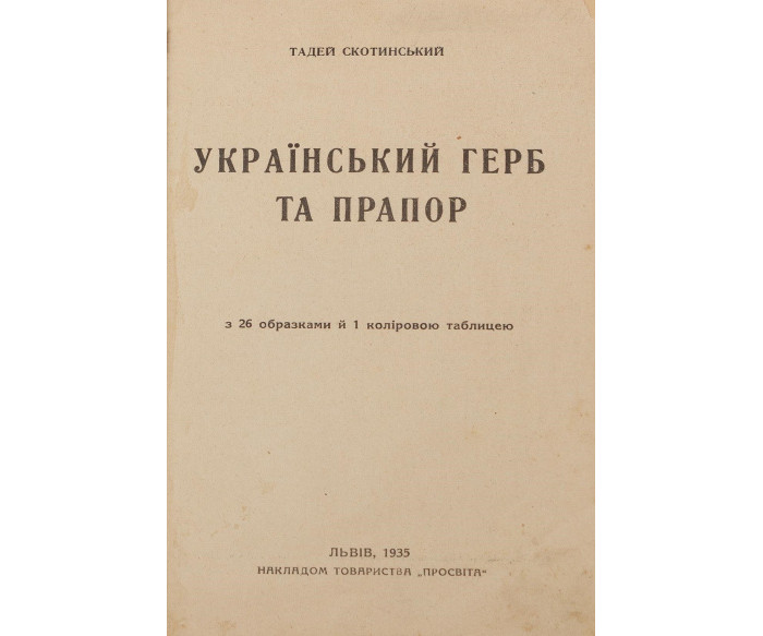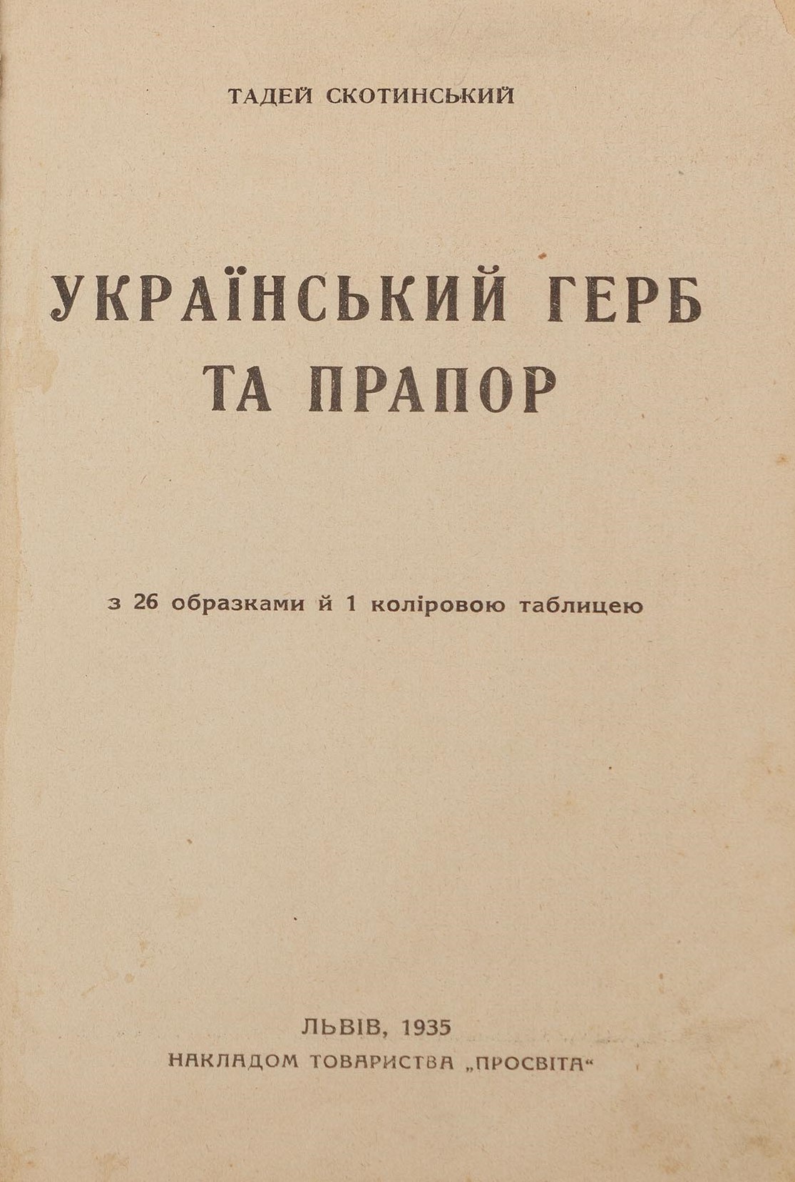Історична розвідка відомого дослідника української символіки Тадея Скотинського, в якій доводиться глибоке історичне коріння українських державних символів — тризуба та синьо-жовтого прапора. У книзі розглянуто ознаки національності, давні українські герби, подано пояснення терміну «тризуб» тощо.