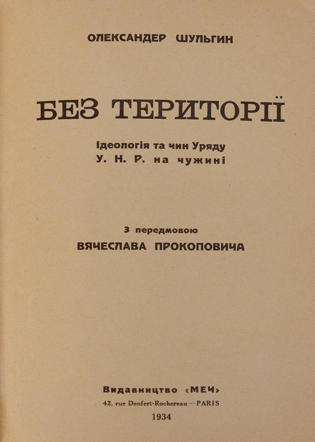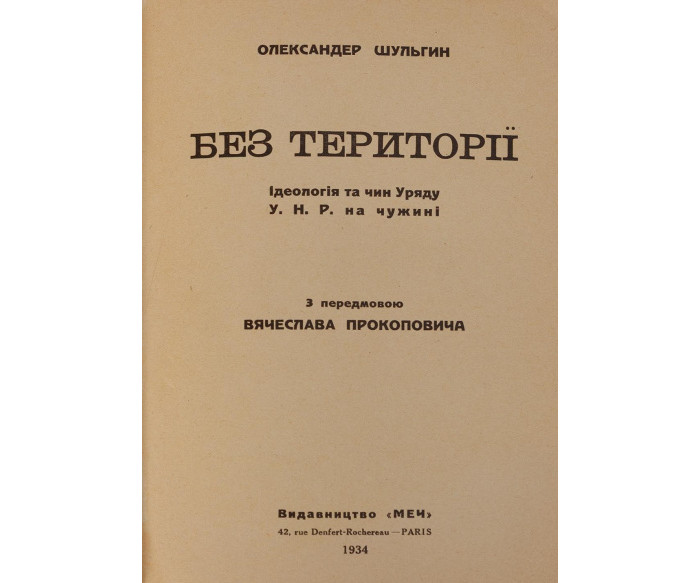 Шульгин О. Без території: Ідеологія та чин уряду У. Н. Р. на чужині / з передмовою Вячеслава Прокоповича.
