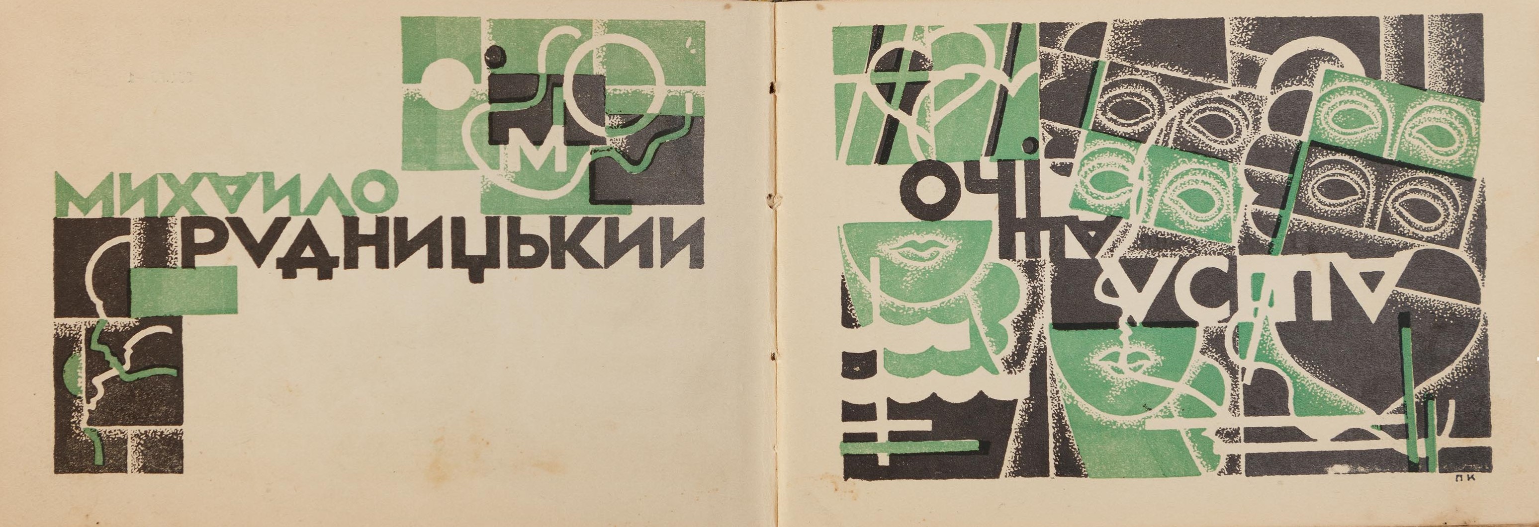 У коленкоровій палітурі. Потертості й незначні забруднення. Книжковий блок частково розпадається. Авангардна графіка художника Павла Ковжуна.