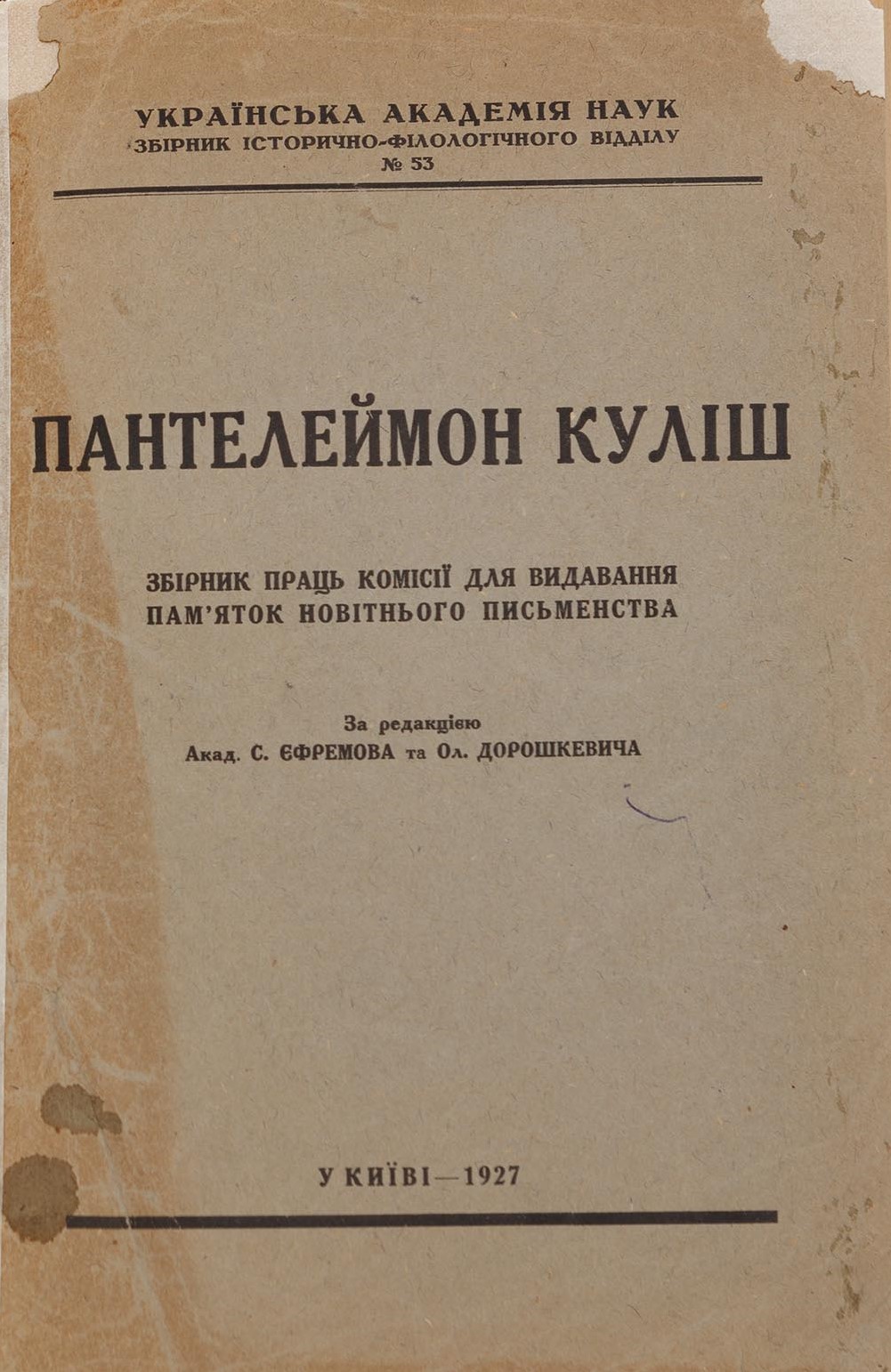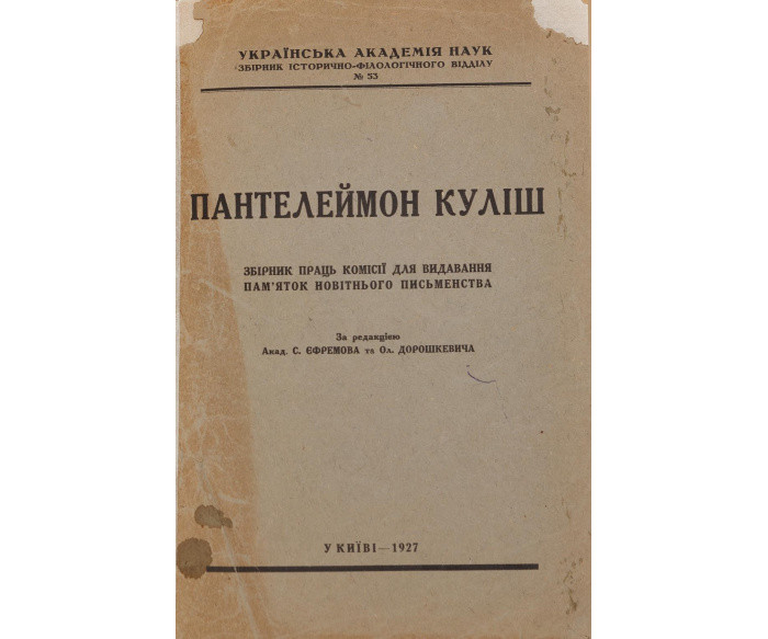 Київ: Друк. Київської Філії Книгоспілки, 1927. — 200 с. — (Українська Академія Наук; Збірник історично-філологічного відділу № 53). — 26,3 × 17,8 × 1,1 см.