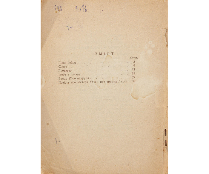 Відсутня обкладинка. Незначні потертості й забруднення. Дві останні сторінки випадають з блоку.