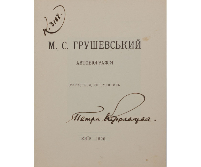 250–350 $Автобіографія видатного українського історика, громадського та політичного діяча Михайла Грушевського (1866–1934) вийшла з нагоди 60-річчя з дня народження і 40-річчя наукової діяльності. Представлене видання включає у дещо зміненій формі першу друковану «Автобіографію» 1906 року й додаток-продовження, що охоплює 1906–1924 роки. У цій частині автобіографії діяльність і життя М. Грушевського подається від третьої особи.