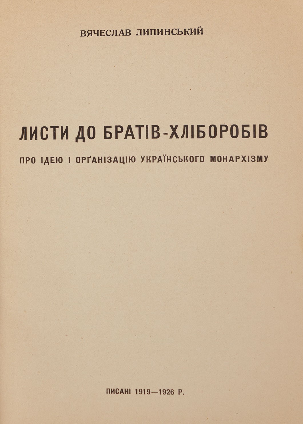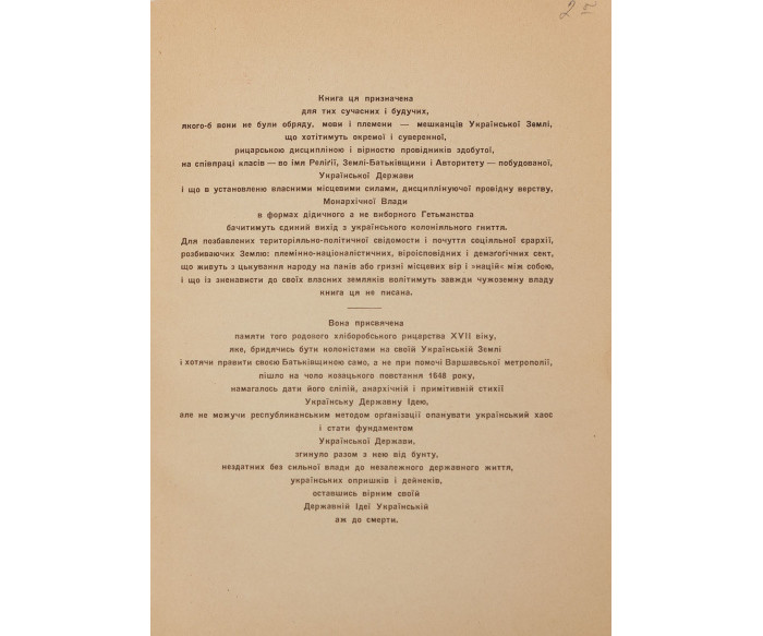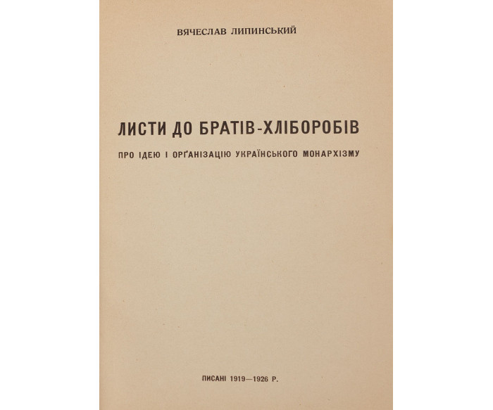900–1 000 $Книгу присвячено ідеологічним питанням побудови українського монархізму з погляду організації суспільства. Липинський розглядає державу як абсолютну цінність, без якої неможливий цивілізований суспільний розвиток.