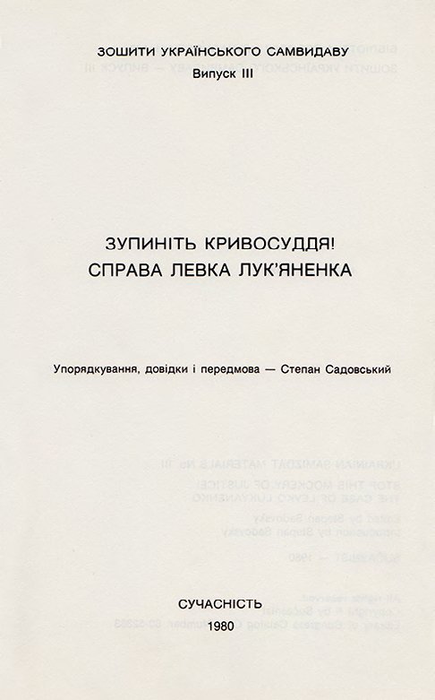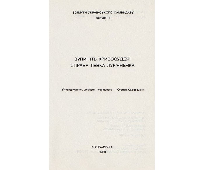 [Мюнхен]: Сучасність, 1980. — 264 с.: фронтиспис, фото. / Зошити українського самвидаву, вип. ІІІ. — 21,2 × 13,5 × 1,5 см. В оригінальній обкладинці. Передмова Степана Садовського. Автор однієї зі вступних статей — Іван Світличний. Художнє оформлення обкладинки Ірини Івахів. Видання має історико-культурну цінність і становить колекційний інтерес.