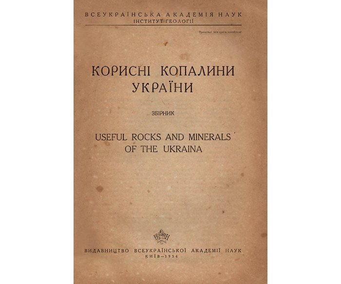 Київ: Всеукраїнська академія наук. — 204 с., [4] арк. мап., [1] арк.: іл. / Інститут геології. — 26,5 × 17,6 × 1 см. — 800 прим. В оригінальній видавничій обкладинці. Не значні потертості та забруднення. На звороті титульного аркуша напис кульковою ручкою «АН 1129». Назви книги та статей продубльо вано англійською мовою. Видання має наукову, історико-культурну цінність і становить колекційний інтерес.