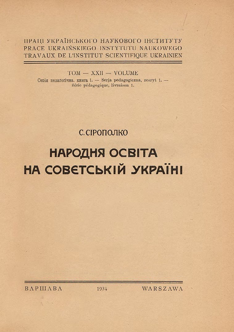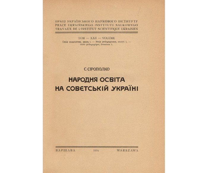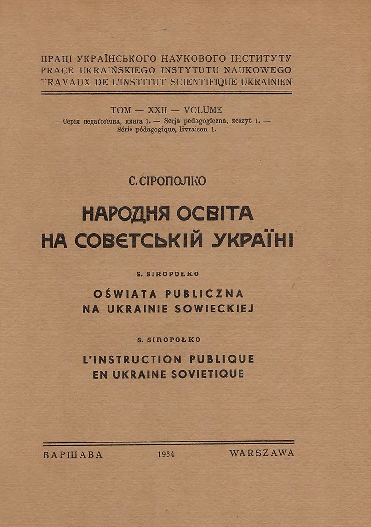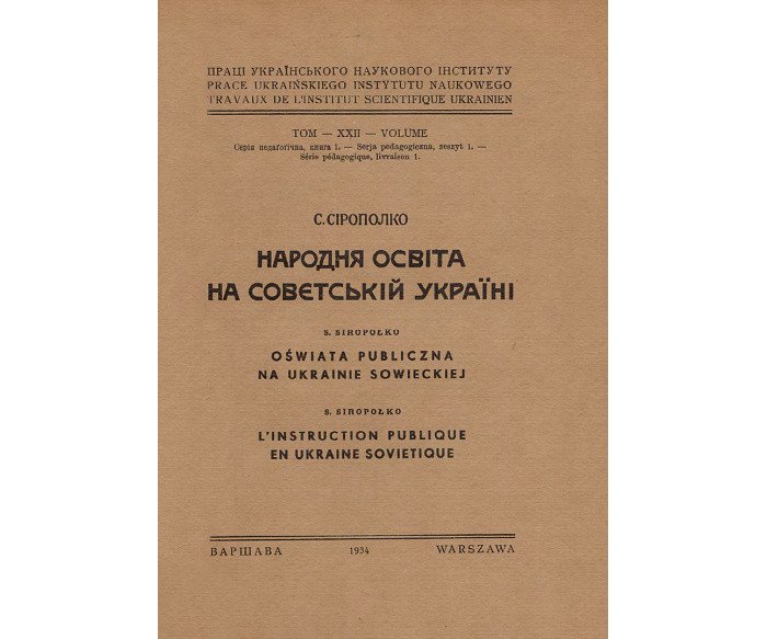 Ред. Р. Смаль-Стоцького. Варшава: Zaklady graficzne E. i D-ra K. Kozianskich; [друк. Наукового товариства ім. Шевченка]. — 240 с., табл. / Праці Українського наукового інституту, т. ХХІІ, серія педагогічна, кн. 1. — 25 × 18 × 1,8 см. В індивідуальній складеній («мармуровий» папір, шкіра) палітурі. Орнаментально-шрифтове тиснення золотом на корінці. Збережено оригінальну обкладинку. Незначні забруднення. Книга має наукову, історико-культурну цінність і становить колекційний інтерес. Прижиттєве видання автора.