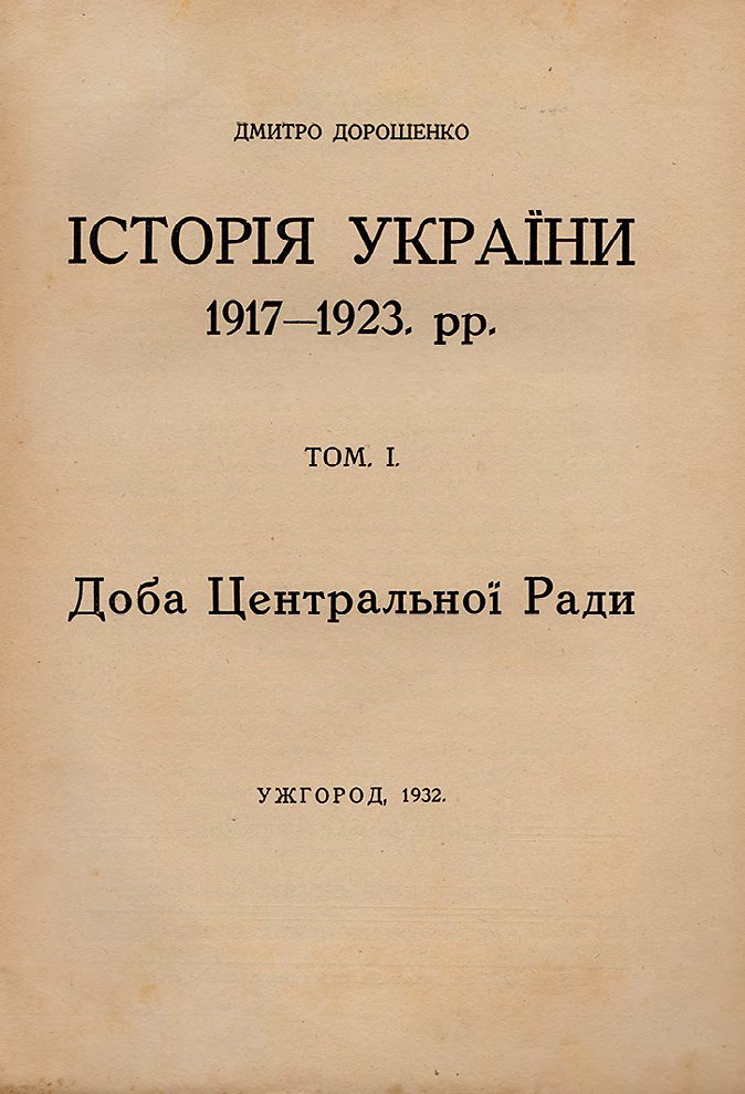 Т. І: Доба Центральної Ради. — Ужгород: Накладом О. Цюпки; друк. «Свобода». — 437, XXI с.: іл., [1] арк. фронтиспис (портр.). — 25 × 17,5 × 2 см. Т. ІІ: Українська Гетьманська Держава 1918 року. — Ужгород: Накладом О. Цюпки; друк. «Свобода»,