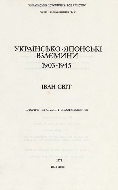 Нью-Йорк: Видавництво Українсь- кого історичного товариства. — ХІІ, 372 с.; [12] арк. іл. / Серія «Мемуаристика», ч. 3. — 23,9 × 15,6 × 2,9 см. У коленкоровій палітурі з тисненням. Незначні потертості та забруднення. Художнє оформлення Оксани Мошин ської, напис Юрія Мошинського. Передмова Любомира Винара. Книга має наукову, історико-культурну, художню цінність і становить колекційний інтерес. Прижиттєве видання автора. Ілюстроване видання.