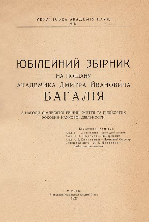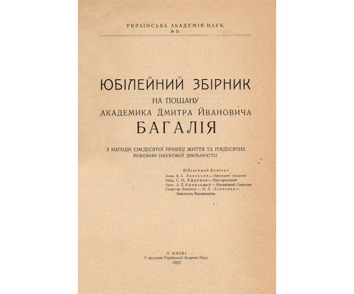 За ред. В. Липського, С. Єфремова, А. Кримського, М. Левченка. Київ: З друк. Української академії наук. — [1] арк., XIІ с.: фронтиспис, 194 с., 1188 с.: іл., карта, [2] арк. / Українська академія наук, збірник Історично-філологічного відділу, No 51, т. І. — 26,3 × 17 × 5,5 см. В індивідуальній складеній (шкіра, «мармуровий» папір) палітурі, орнаментально-шрифтове тиснення золотом на корінці. Збережено оригінальну обкладинку. Форзаци, каптал. Незначні потертості та забруднення. Книга має наукову, історико-культурну цінність і становить колекційний інтерес. Бібліографічна рідкість. Прижиттєве видання авторів.