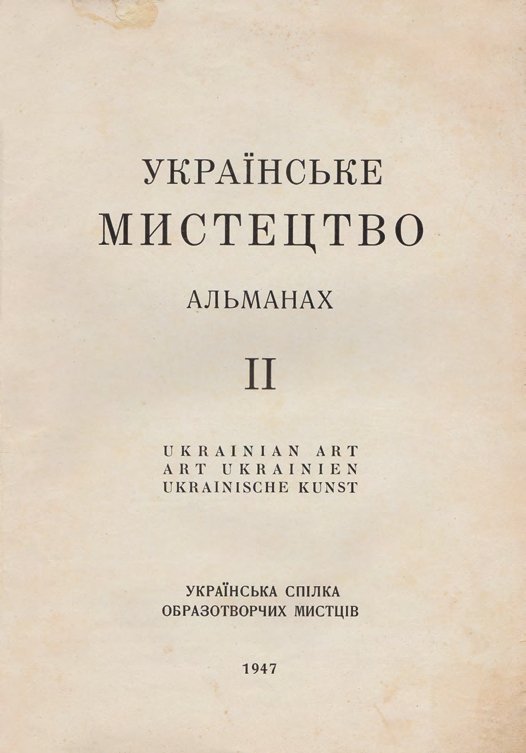 Ч. І: Мюнхен: Українська спілка образотворчих мистців; друк. R. Oldenbourg, 1947. — 40 с., іл., [2] арк., іл. — 32 × 23,3 × 0,3 см; Ч. ІІ: Мюнхен: Українська спілка образотворчих мистців; друк. R. Oldenbourg, 1947. — 56 с., іл., [4] арк., іл. — 32 × 23,3 × 0,4 см. В оригінальній видавничій обкладинці. Незначні потертості паперу. Художнє оформлення обкладинки Михайла Дмитренка. Позначки в тексті олівцем. Видання має художню, наукову, історико-культурну цінність і становить колекційний інтерес.