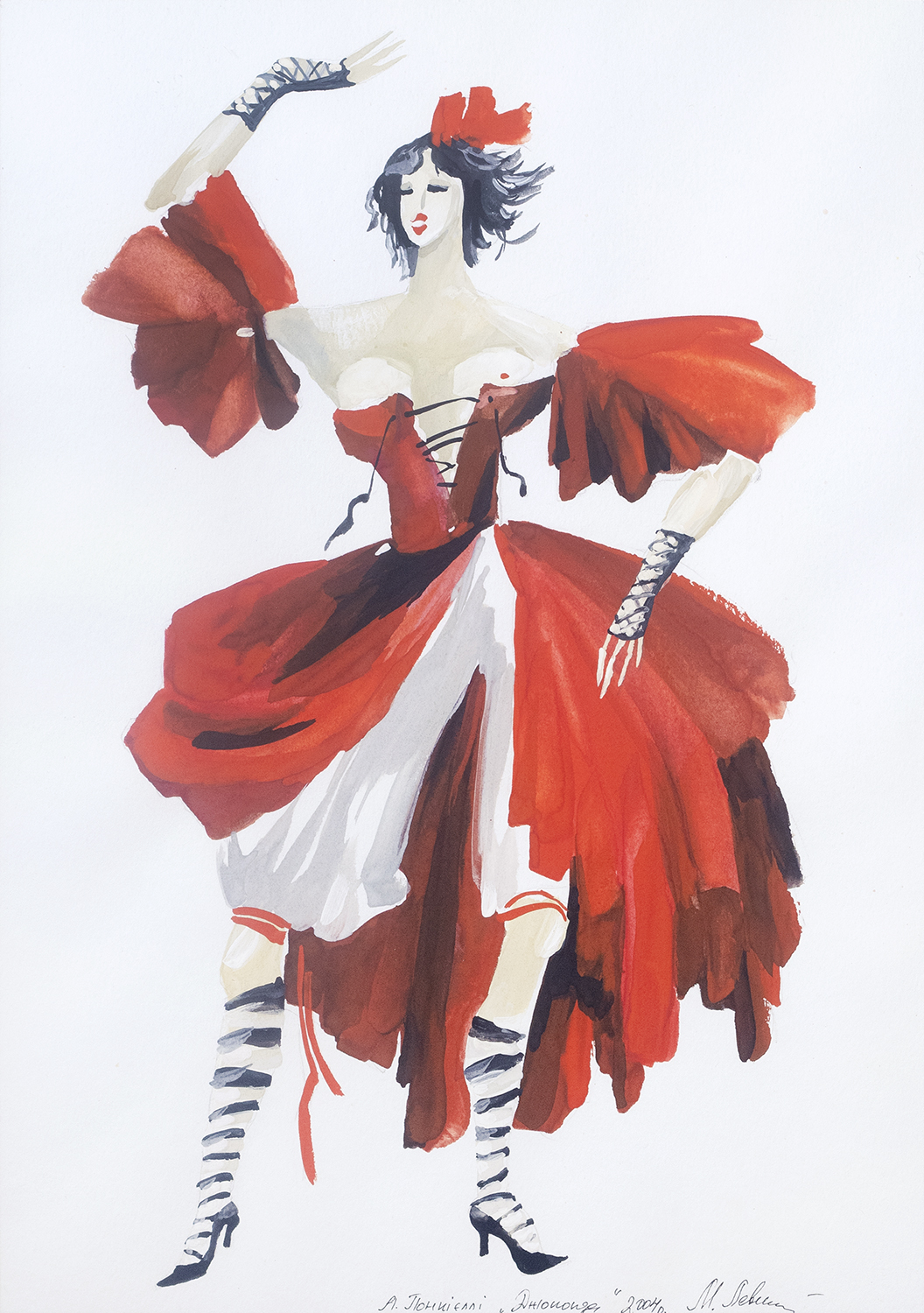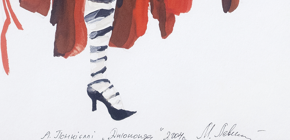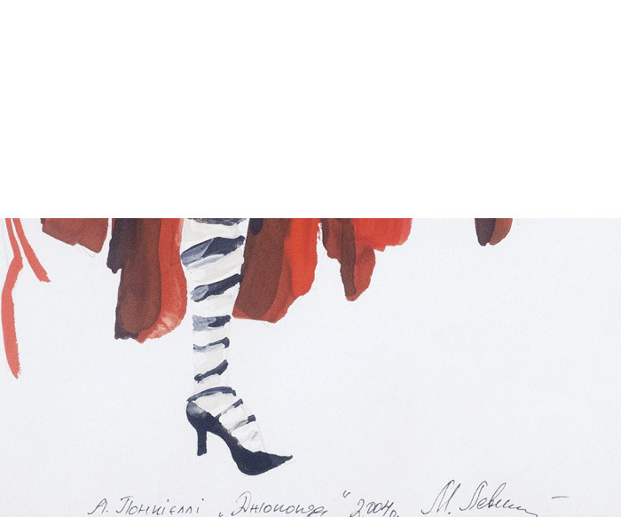 Ескіз до опери «Джоконда» А. Понкієллі головної художниці Національної опери України, лауреатки Національної премії України імені Тараса Шевченка Марії Левитської (нар. 1955). В ескізах костюмів Марія Левитська поєднує високу моду, музику, історію та рух.