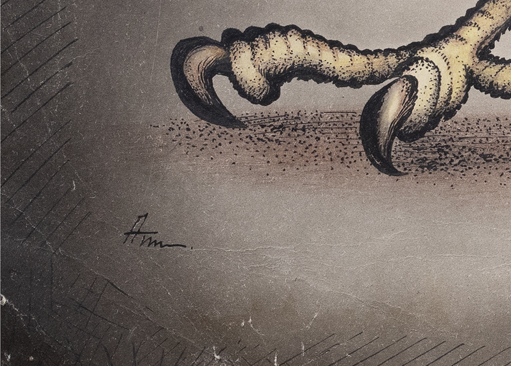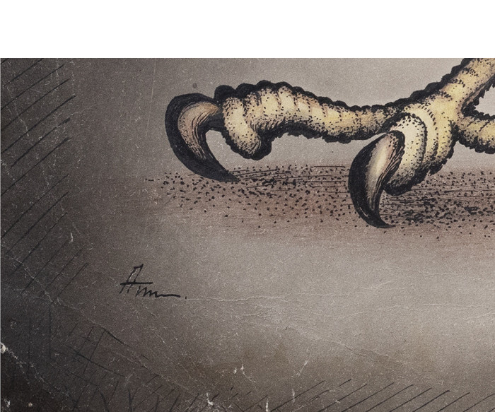 Папір, мішана техніка. Розмір аркуша: 28,5 × 40 см. Ліворуч внизу авторський підпис.