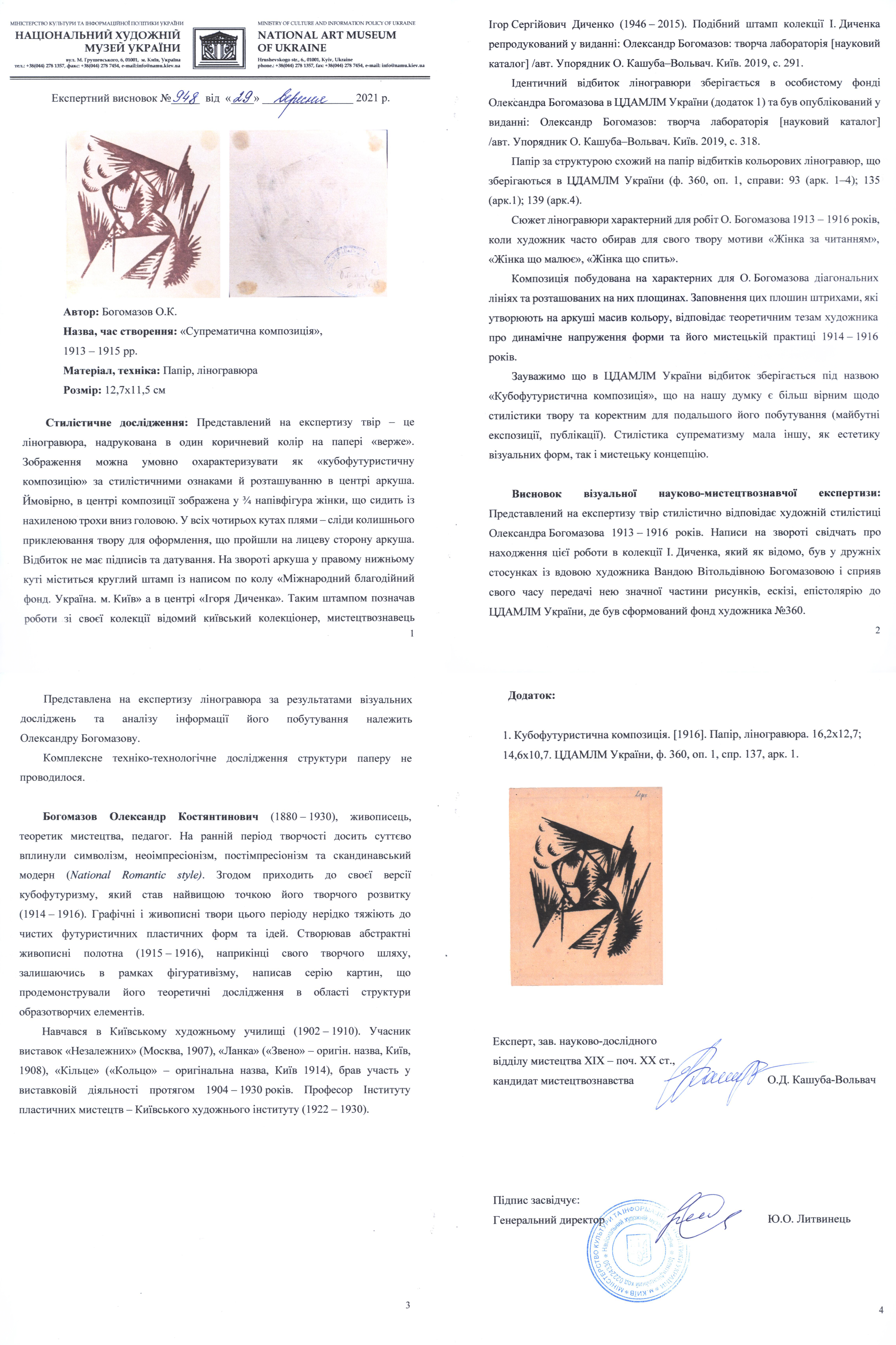 Атрибуція: Експертний висновок Національного художнього музею України № 948 від 29 вересня 2021 р.