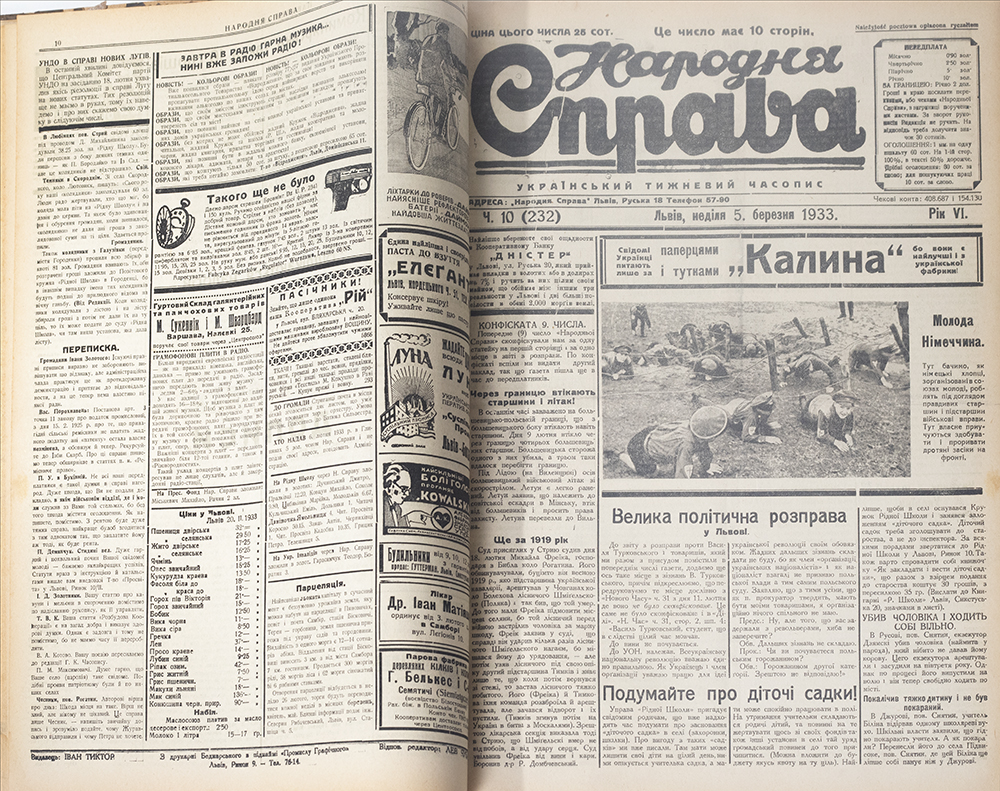 Львів: Українська преса; видавець Іван Тиктор, 1933. — Ч. 1–52 (річний комплект). — 470 с.: іл. — 41 × 29 × 3 см.