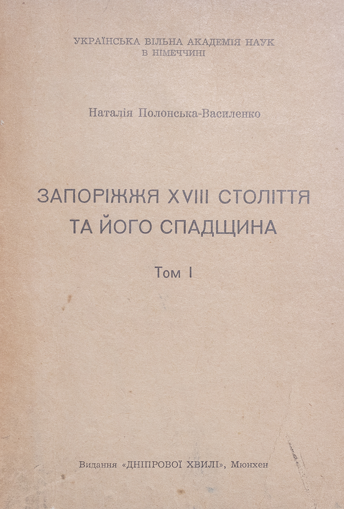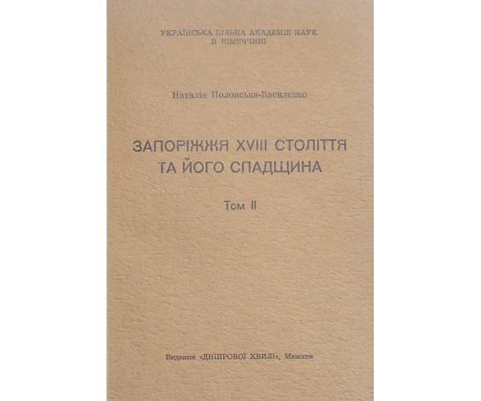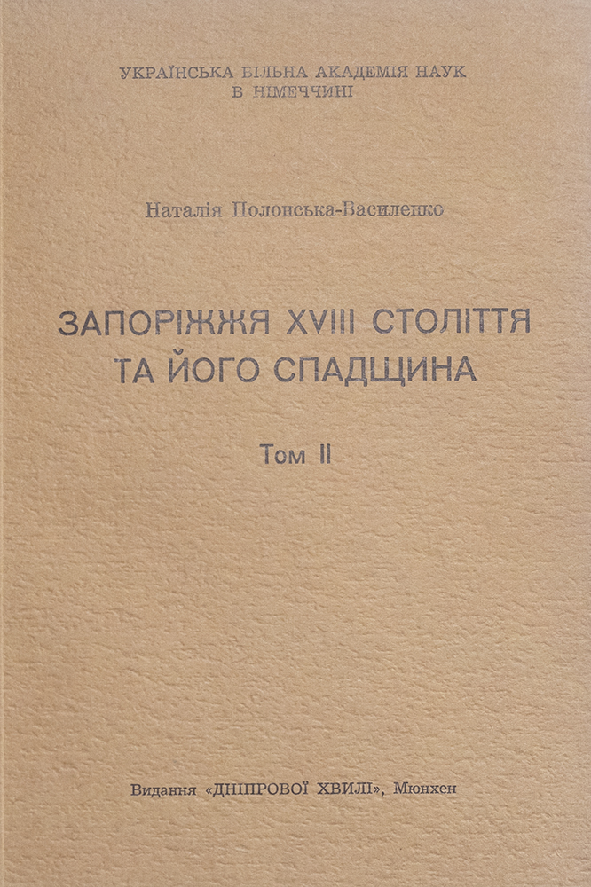 Полонська-Василенко Н. Запоріжжя ХVІІІ століття та його спадщина: у 2-х т. Т. І–ІІ.