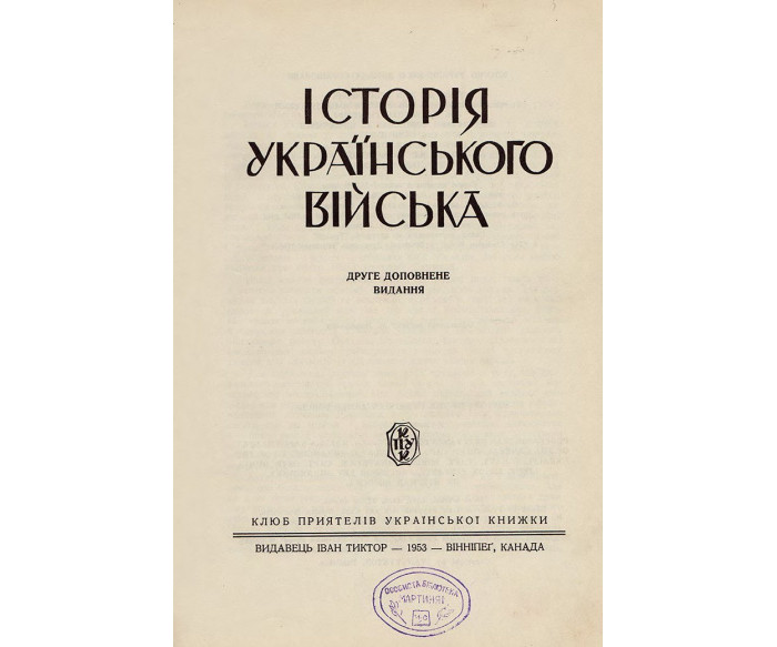 Вінніпеґ: Клюб приятелів української книжки; Вид. Іван Тиктор; друк. «Тризуб», 1953. — Друге доповнене видання. — [8] с., 832 с., [1] арк. іл., VI с., [14] с. — 25,6 × 19 × 5,5 см.